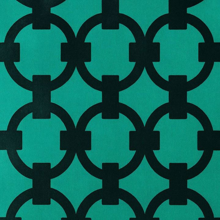 Floş ve Viscon karışımı kumaş.Yeşil zemin üzerinde siyah halkalı geometrik desen. Modern, şık ve çok yönlü kullanım için ideal kumaş.